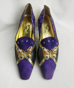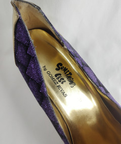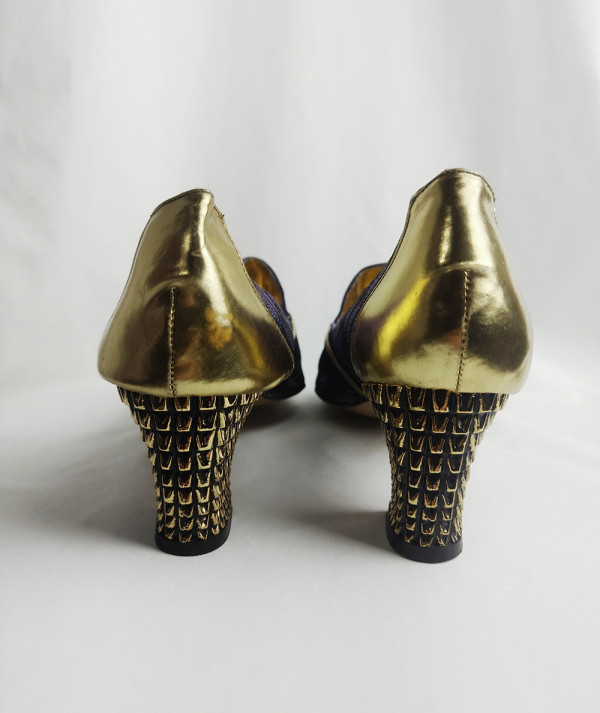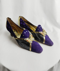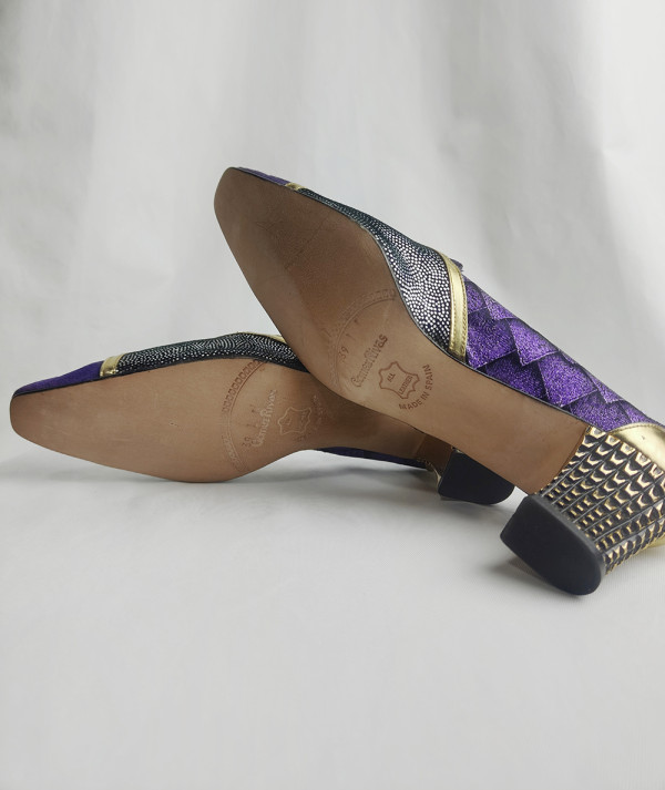 Wykonane ze skóry naturalnej oraz wysokiej jakości tkaniny metalicznej.