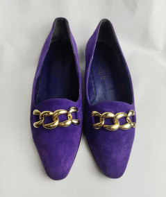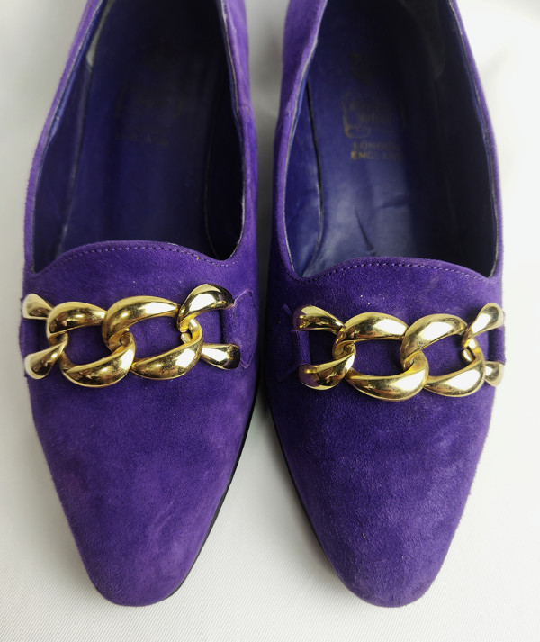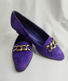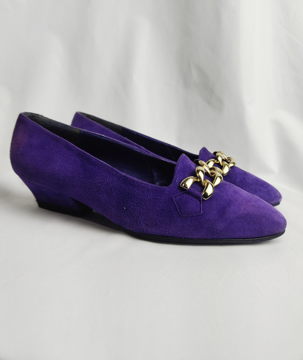r. 38 Czółenka skóra naturalna vintage 80s zamsz łańcuch premium