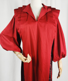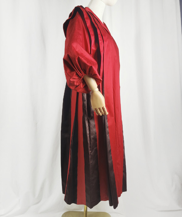 Delikatny dekolt w kształcie litery V, wykończony subtelnym kołnierzykiem. Sukienka została uszyta w całości z wysokiej jakości jedwabiu – tkanina jest gruba i nieprześwitująca.