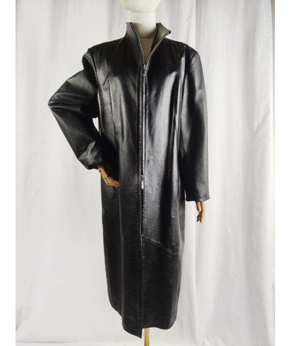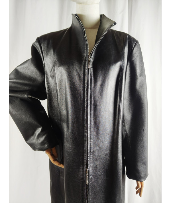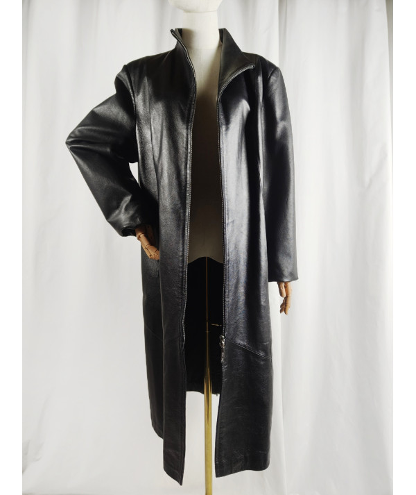 Płaszcz maxi zapinany na zamek, w 100% wykonany ze skóry naturalnej, która została poddana renowacji.