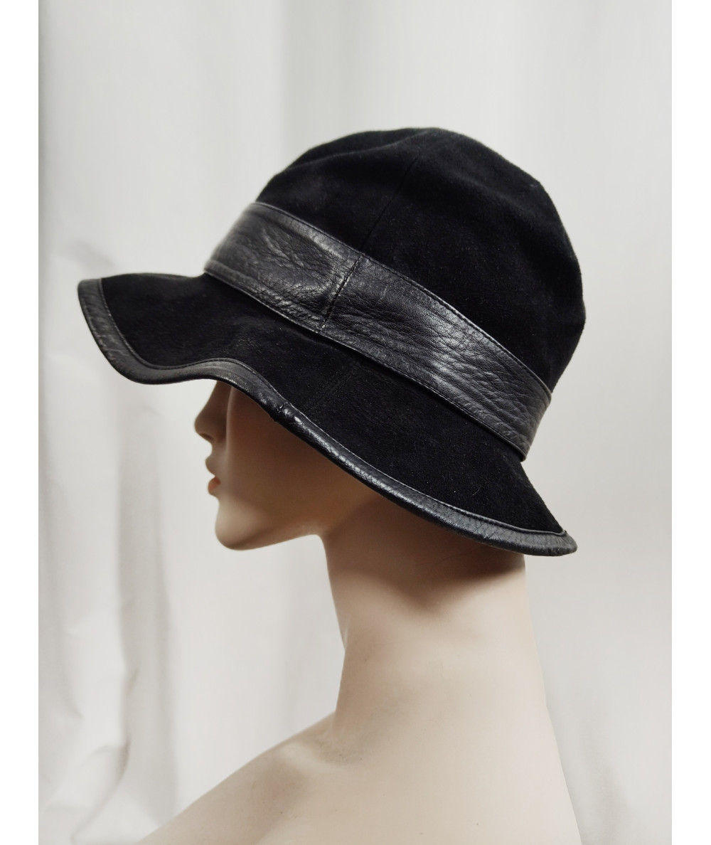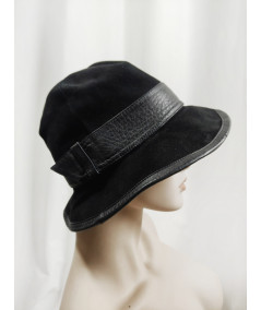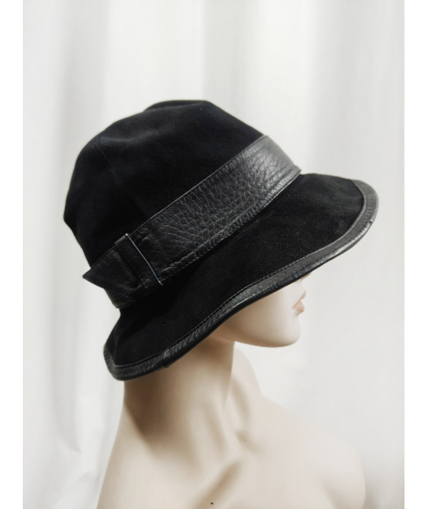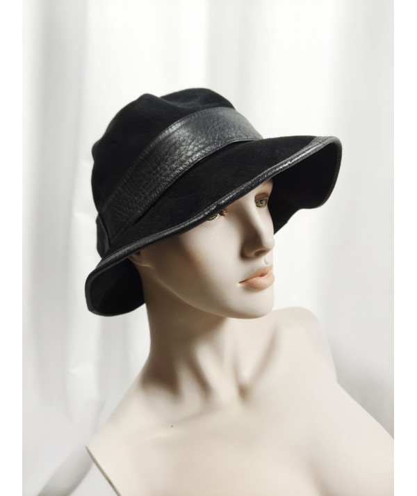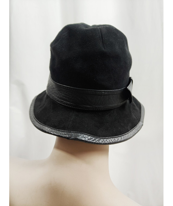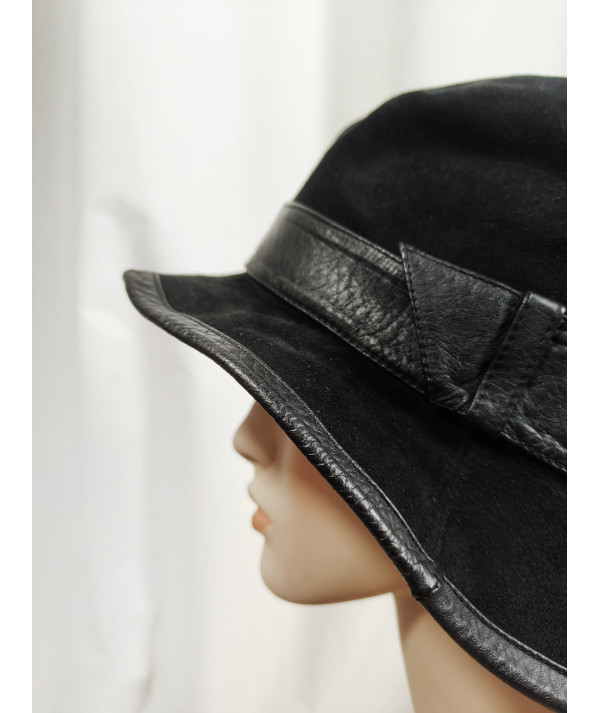 Kapelusz wykonany w 100% ze skóry naturalnej, w kolorze czarnym.