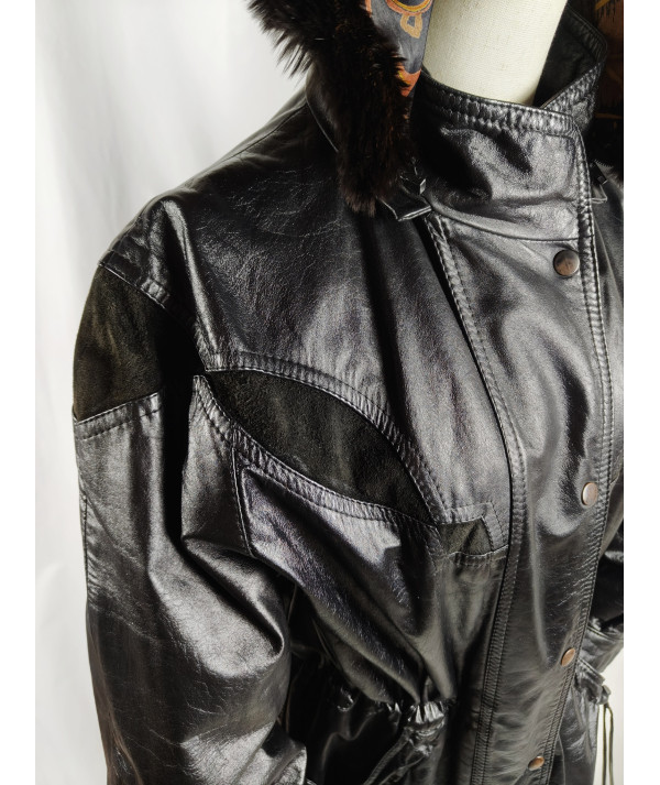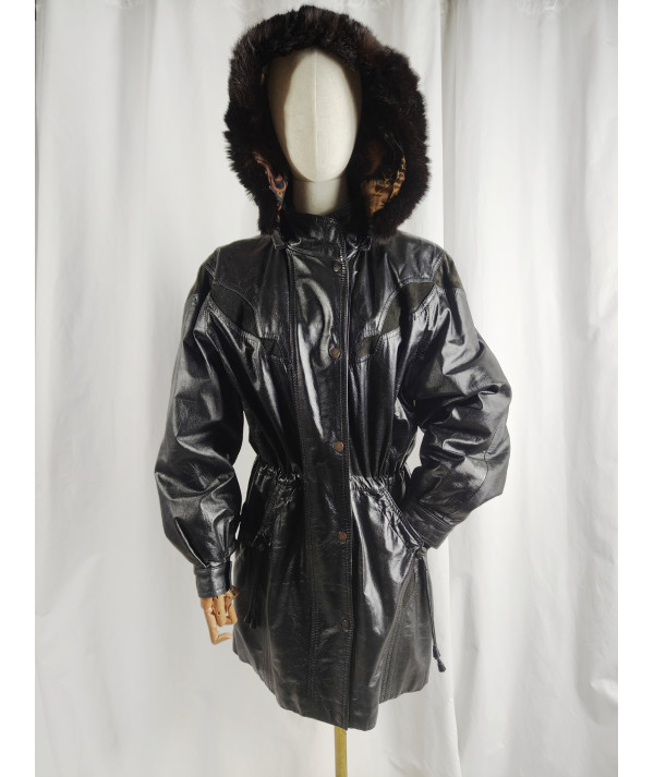 r. L/40 parka 100% skóra naturalna kurtka płaszcz vintage lata 80s po renowacji