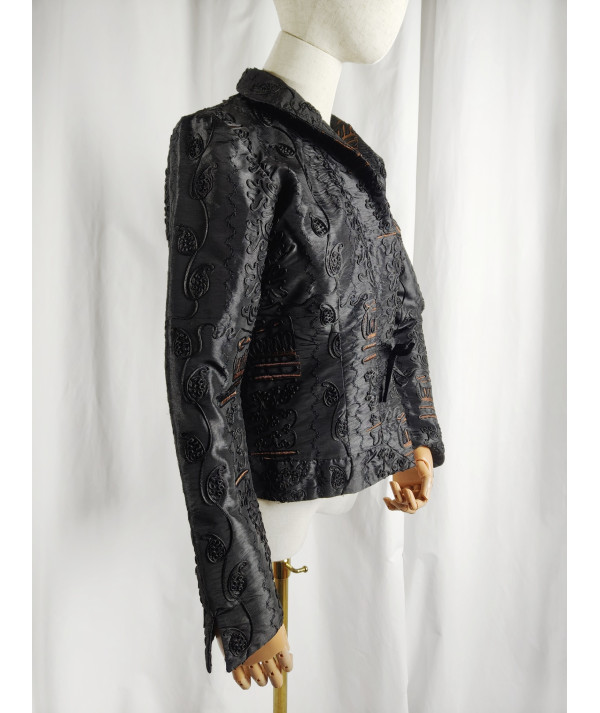 r. S Jane Heinemann marynarka żakiet wyszywana 100% jedwab premium old money