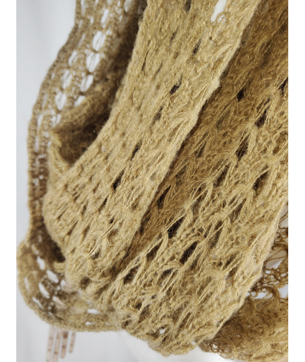 Rosie & Roses Komin szal oversize ażur pleciony musztardowy XXL