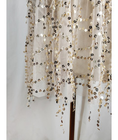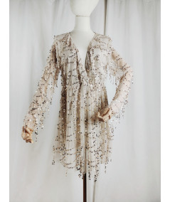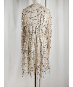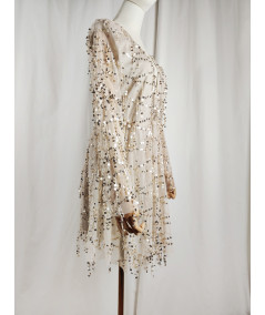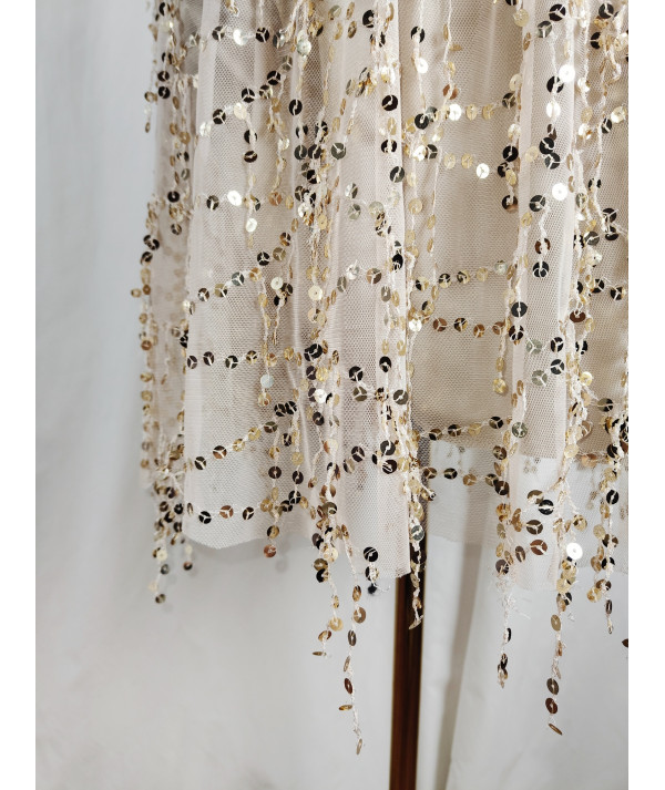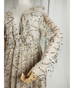 r.42 / XL boohoo sukienka wyjściowa cekiny frędzle kopertowa złota beż