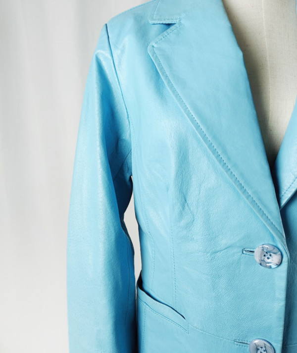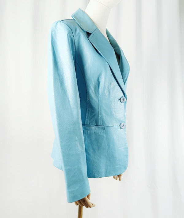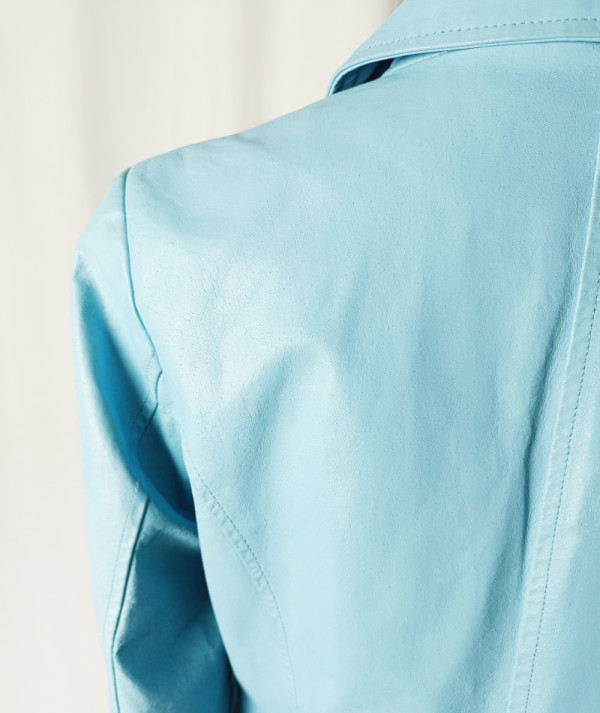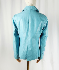 r. 40/L b.young marynarka kurtka skóra naturalna vintage lodowy niebieski